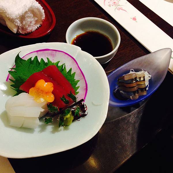 菜單精緻地放在桌上,這次三個人都是吃---千成套餐(3240日圓)