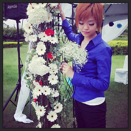 婚禮場佈是擔任電影工作者的新郎、新娘自己負責的。