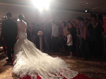 戶外結束之後進入室內午宴,新娘的婚紗好漂亮呢!