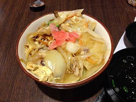 阿介點了親子丼,滿滿的蛋跟雞肉還有洋蔥撲在上面,
