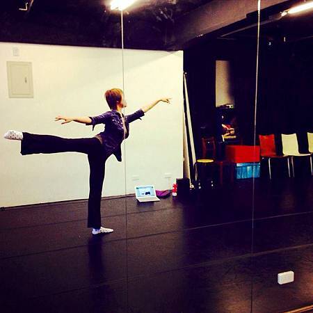 揮汗如雨跟著帥氣的薇潔老師學習今年演出的某一段舞蹈。