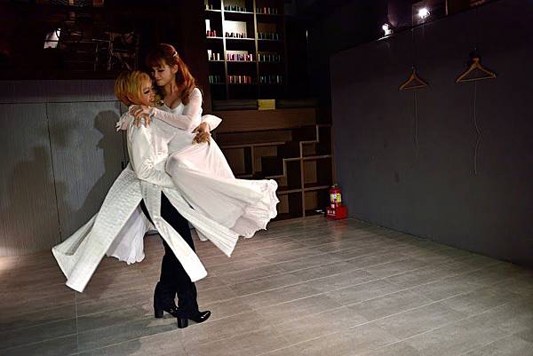 再來,又要說到跟場地之間的關係。跟索引文創完全相反,南海有後台可以預備,演員跟觀眾席之間藉由黑幕,可以多很多的想像空間。可惜的是,也許因為有樂器,南海的場地上多了吸音地毯,若說索引是過滑,南海根本就是卡死在地毯中,很多動作都很卡,再加上南海本身舞台就不大,更是限制了這支雙人舞很多,實在是稍嫌可惜啊!!!服裝部分也更換程去年咪咪代演時的衣服。試裝台的時候試著穿本來的禮服,高跟鞋直接把裙子訂在地毯上!換了一件,再加上角色個性不同,也意外呈現出了這支舞蹈不同的感覺。不過,也是因為場地的特出性,我真心地覺得...阿介的出場好帥好帥好帥!❤