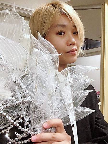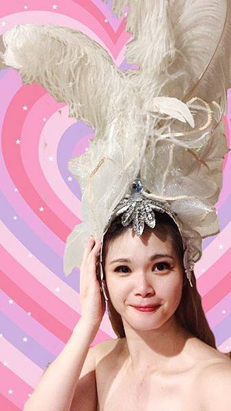 在朋友的協助下,婚禮前一天終於把羽毛縫製好定妝