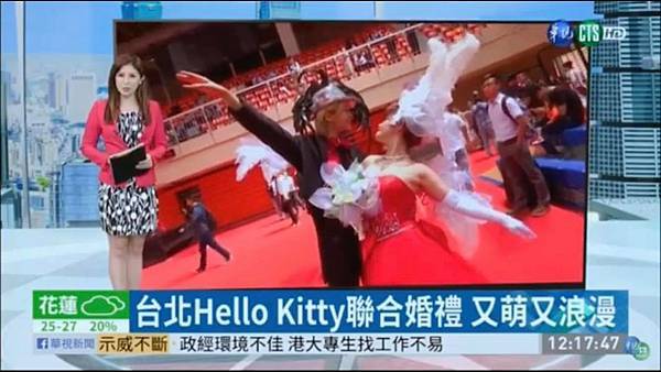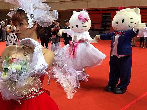 由於聯合婚禮是以凱蒂貓當主題,主辦單位希望能夠有蝴蝶結,