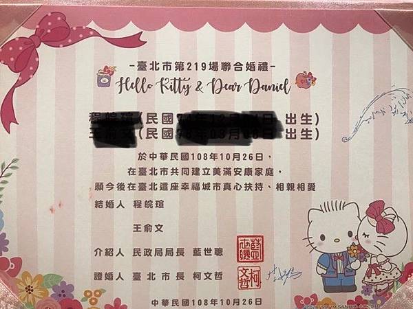在此時得知了北市聯合婚禮的消息,是阿介最喜歡的kitty,由於阿介設籍在台北市加上我的工作亦在台北市,