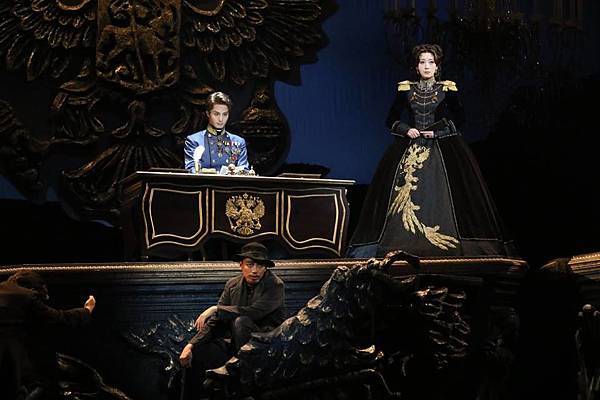 動聽的旋律看似信手捻來,但都出自于作曲家的別出心裁,伊麗莎白與皇帝一見鍾情的情歌對唱,第二次出現是結婚舞會上,當死神唱完「最後之舞」,伊麗莎白從幻象中回到現實,倉惶失措地奔向皇帝尋求庇護,伊麗莎白(花總飾演)以充滿乞求的聲音,對皇帝唱出自己的害怕與無助,到下半場劇終了前,同一段旋律,卻是白髮蒼蒼的皇帝祈求妻子的愛,從最初的形影不離、濃情蜜意,到兩人終成平行線的嘆息,副歌以長長的旋律線條,讓演員將情緒填滿,在田代万里生與花總演繹下,層次飽滿且感人。
